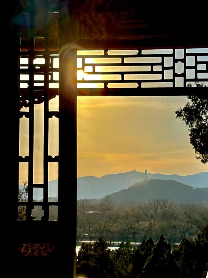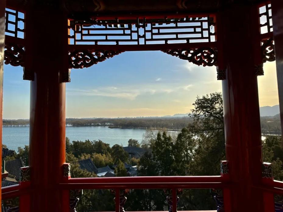 東屋の8本の柱は「額縁」のように柱の間から様々な景色を映し、方向ごとに独特の景色を見ることができる。南を向くと昆明湖の景色を見下ろすことができ、西に目を向けると玉泉や西山の山色を眺めることができるのが特徴になっている。日差しのよい午後4時ごろに、日光を背に人物のシルエットを撮影するといい写真がとれるため、観光客や市民らにこの時間帯での観覧をおススメする。