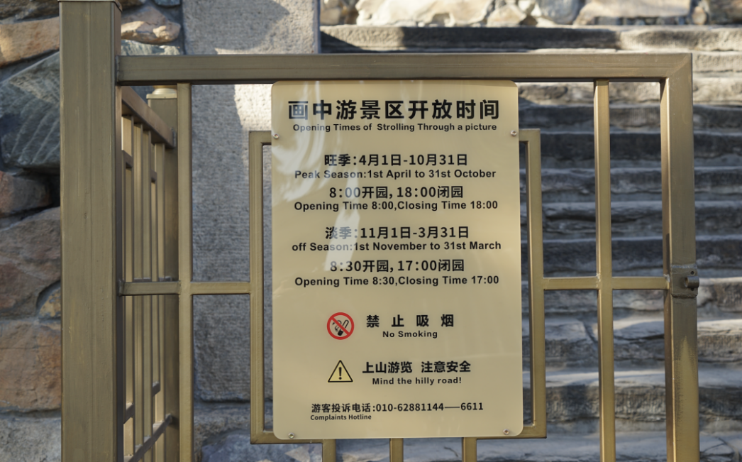 現在、「画中遊」観光エリアのオフシーズン開放期間(11月1日~3月31日)中は8時30分から17時までとする。ハイシーズン(4月1日~10月31日)の開園時間は8時から18時になり、時期によって時間帯が異なるので注意が必要だ。(「画中遊」観光エリアには追加でチケットを購入不要)