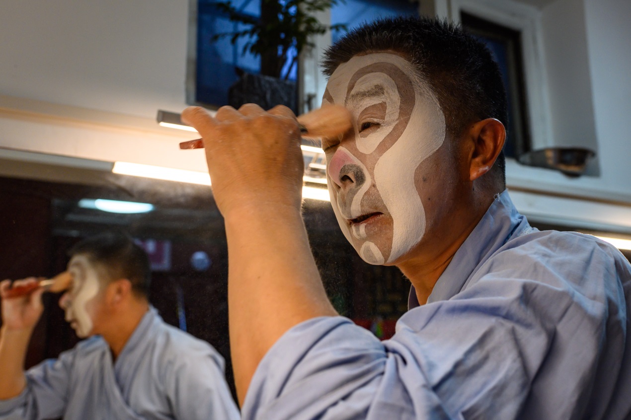 楽屋で隈取りを描く京劇役者