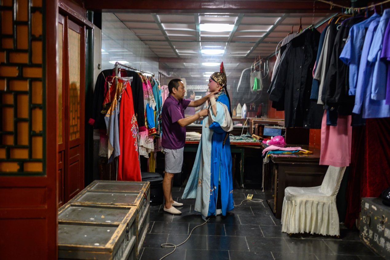 楽屋で衣装に着替える京劇役者
