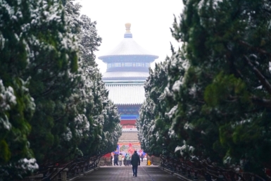 天壇を飾るめでたい雪、古都の春の趣を彩る