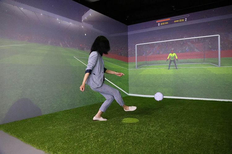 記者がサッカーゲームを体験