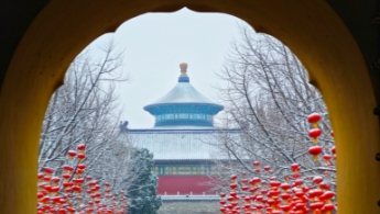 春の雪が北京に舞い降りた。雪化粧した天壇公園はまるで美しい絵巻の如く、北京の歴史的風情と文化の息吹をみごとに映し出している。