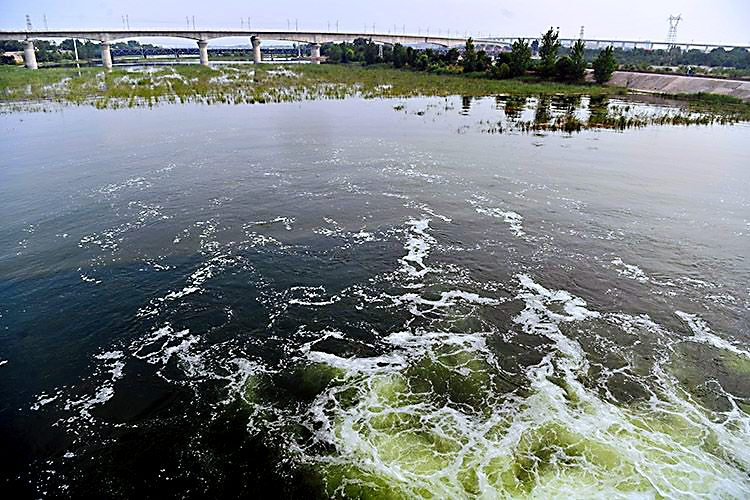 永定河盧溝橋の閘門が開き、透き通った水が勢いよく北京市内へと流れる。