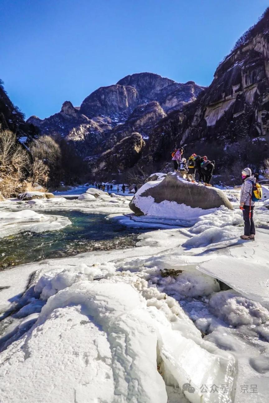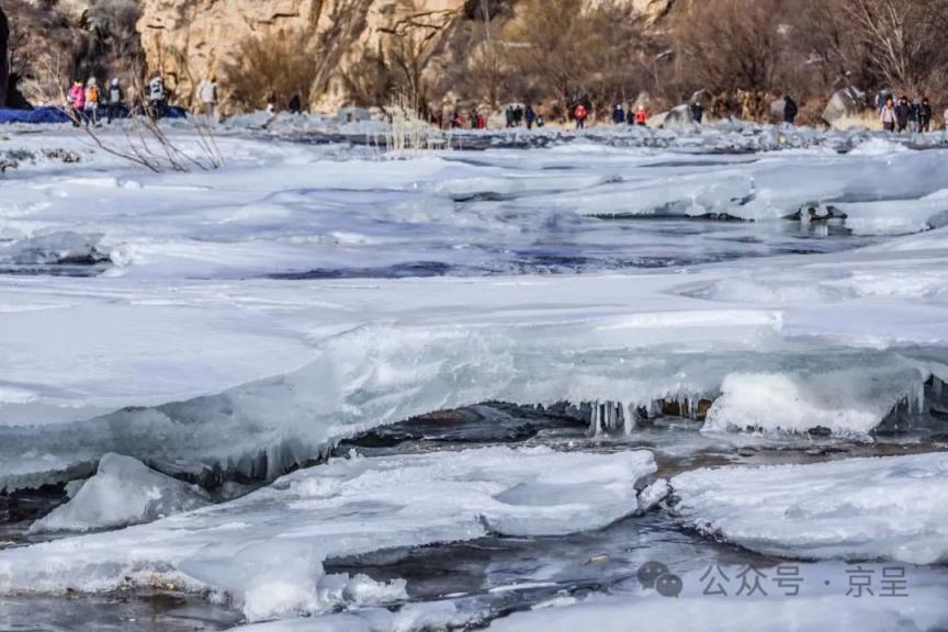 密雲区の白河の川面は厚い氷で覆われており、多くの市民が密雲区の龍雲山景勝地に足を運び、冬の白河峡谷を鑑賞し、氷河の景観を楽しんでいる。