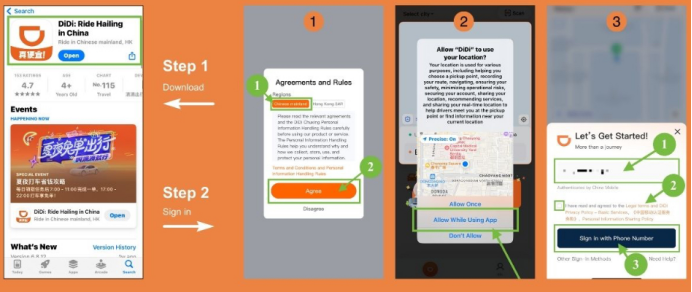 ステップ1:AndroidまたはAppleのアプリストアから「滴滴出行」(DiDi)アプリをダウンロード