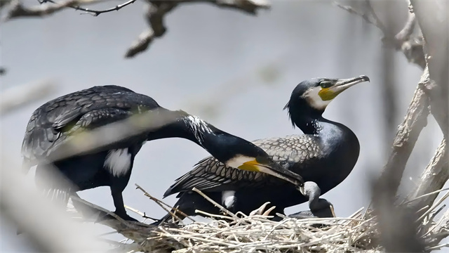12月8日、29羽のソデグロヅルが2つの群れに分かれて北京市内の官庁ダムに飛来した。