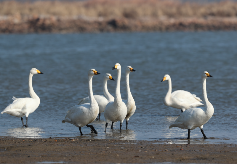 2025年の春の渡り時期には、官庁貯水池では平年の2倍の13万羽を超える渡り鳥が羽休めする姿が見られる。そのうち、ハクチョウは1500羽と過去最多を記録した。
