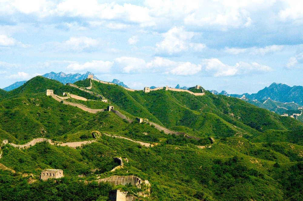 古北口長城の中間部分にある蟠竜山長城には、将軍楼、二十四眼楼、好望楼、大花楼、五眼楼などがあり、全長5キロ、敵楼が40棟余りあり、「ダブル長城(二つの長城がある)」、「城上城(一つの城にもう一つの城がある)」、「城中城(大きな城の中に小さな城がある)」、「城套城(大きな城が小さな城を覆っている)」など複数の奇観を呈しています。