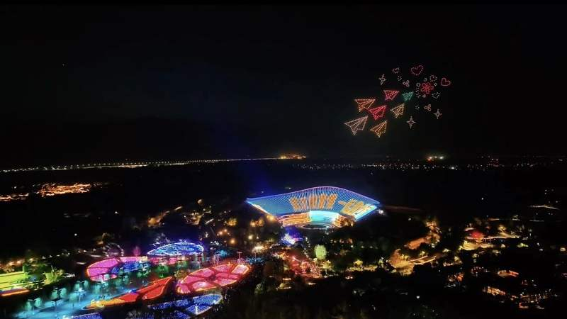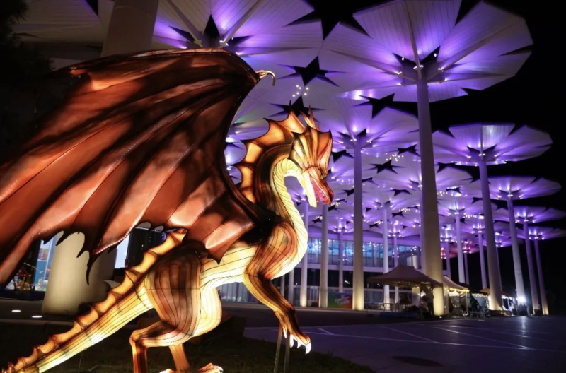 中国館では光と影のファンタジーショー、土曜日限定のドローンパフォーマンスが開催される。